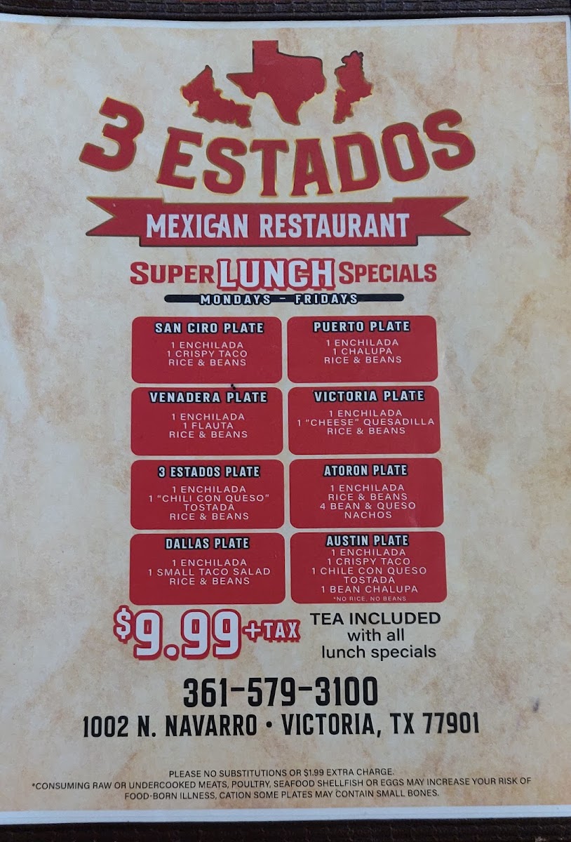 Stepping into 3 Estados Mexican Restaurant Menu feels a bit like being invited to a friend’s table-warm, familiar, and full of dishes that make you want to linger. Located at 1002 N Navarro St in Victoria, it brings together comforting flavors from across Mexico, and the menu reflects that mix in a way that’s both homey and exciting. You’ll find plates loaded with classics like enchiladas and fajitas, along with hearty breakfast options that make it easy to start the day with something satisfying.